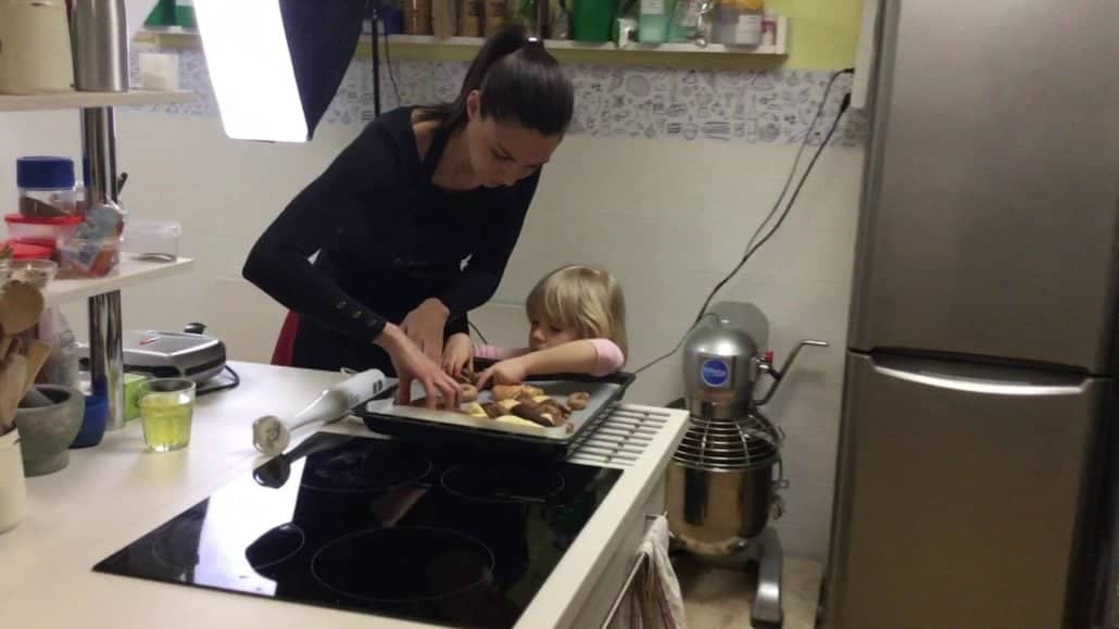 Attila megmutatja a gyereknek , hogy hogyan fonják be a kalácsot, a gyerekek pedig folytatják. Anita segít a lányoknak. Ezután a sütőpapírral bélelt tepsibe teszik és mehet is a sütőbe.